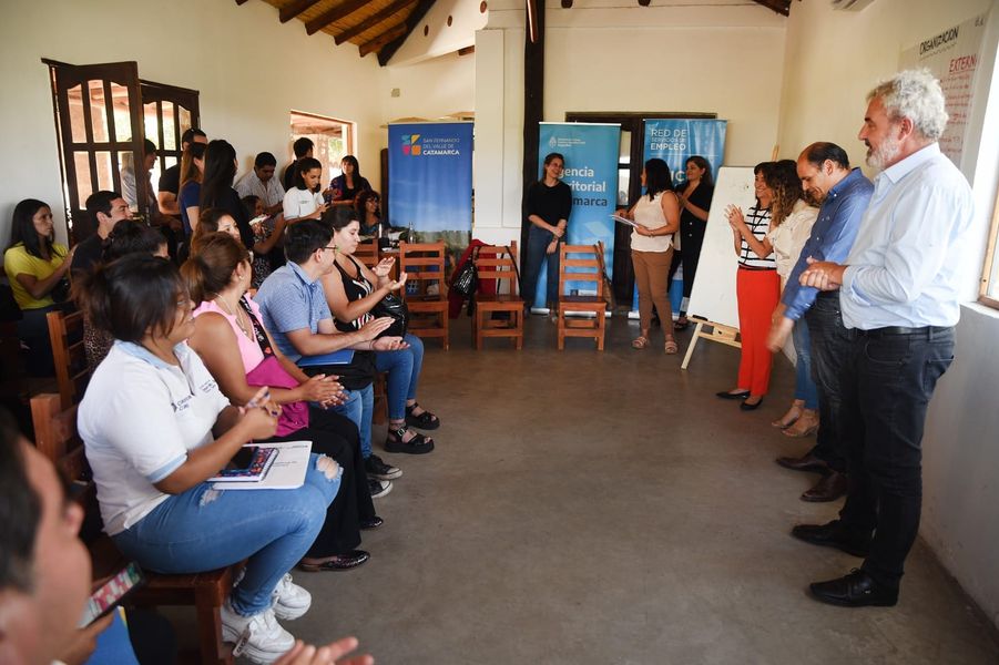 La referente de la Oficina de Empleo, Katya Carrizo, junto a la Jefa de la Agencia Territorial de Catamarca, Ely Fontao, y el director de Enlace con Programas de Políticas Sociolaborables, Daniel Helbing, participaron del tercer encuentro de oficinas de empleo de nuestra Provincia.